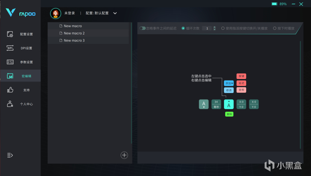 宏编辑界面用户可以进行宏操作的录制,设置完成后可以再日常工作或游戏带来更为便捷的高效操作▼