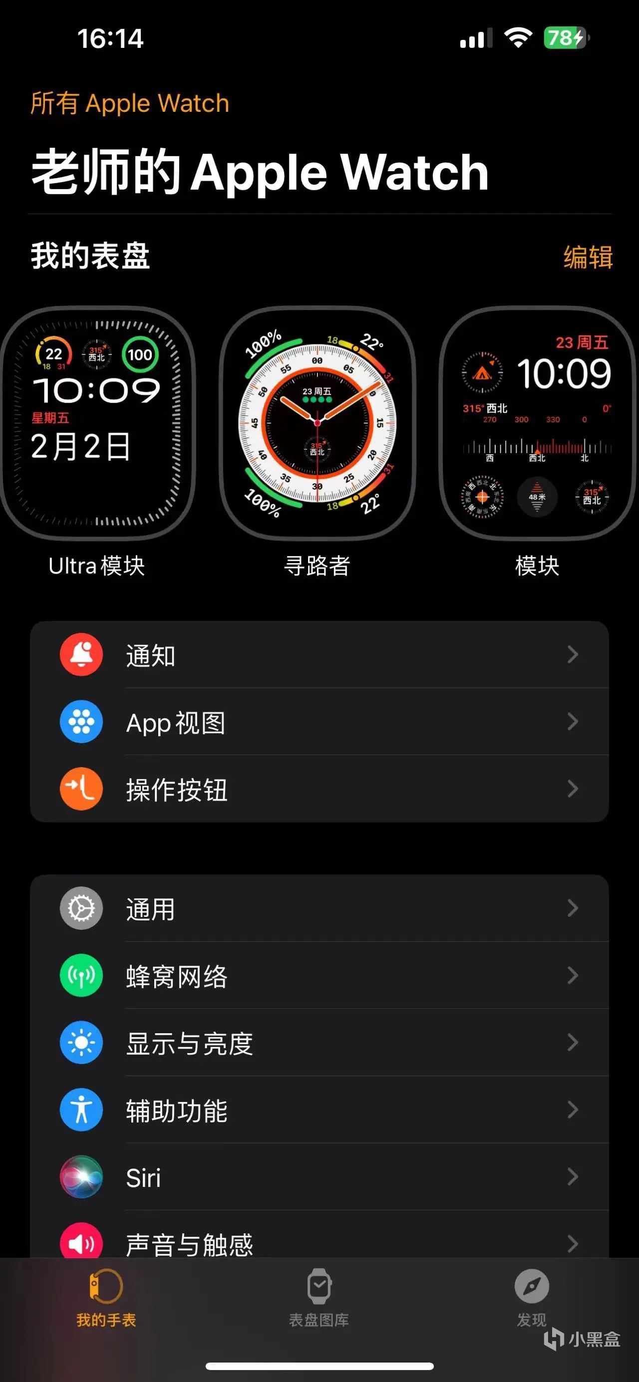 表盘方面Ultra自带的有专属表盘,就是这个寻路者款式/Ultra模块,不过我记不清之前在第三方表盘软件BuddyWatch上是不是也有S系列适配的表盘了。