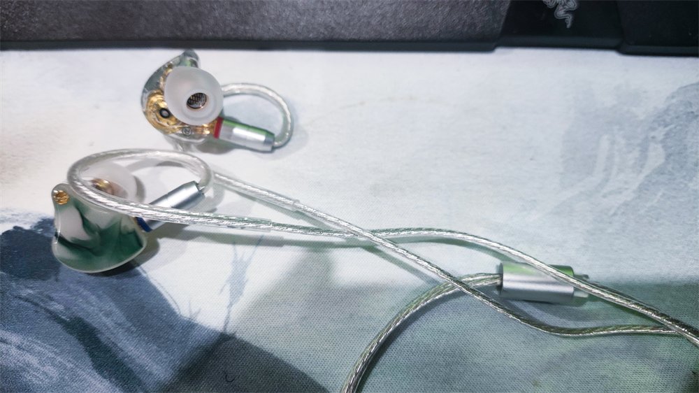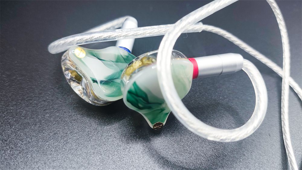 目前惊鸿耳机的配色方面拥有着四种选择,分别为凝霜白/浓墨黑/翡翠/鸳鸯(一个黑一个白),其实不管哪种都显得十分好看,不同的颜色在耳机上的呈现就如同不同颜色大理石,但是我选择了翡翠色,毕竟作为中国人,谁能拒绝一个象征着翠绿色翡翠的耳机呢。