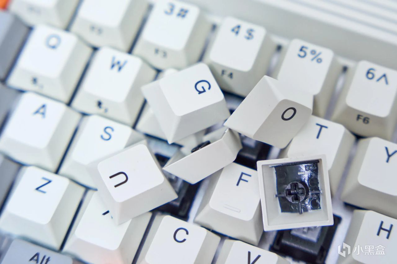 键帽是PBT材质,字符是双色闭口成型工艺,综合保证了指尖接触柔滑细腻,长期使用不打油,字符清晰不磨损。