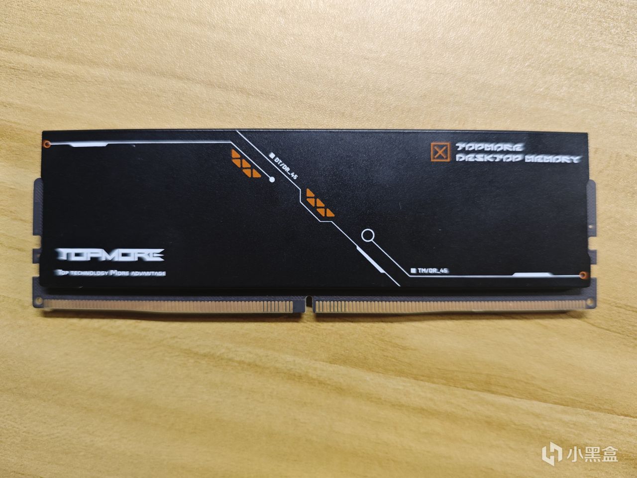 我们近一点看下马甲侧面,达墨缩写印在左下角和右上角,其中间位置有类似数码加载的线条,甚至有点赛博朋克风。值得一提的是内存上面的标签,也挪到了背面,对于不少颜值党用户来说,这下是不是感觉好看很多了呢。