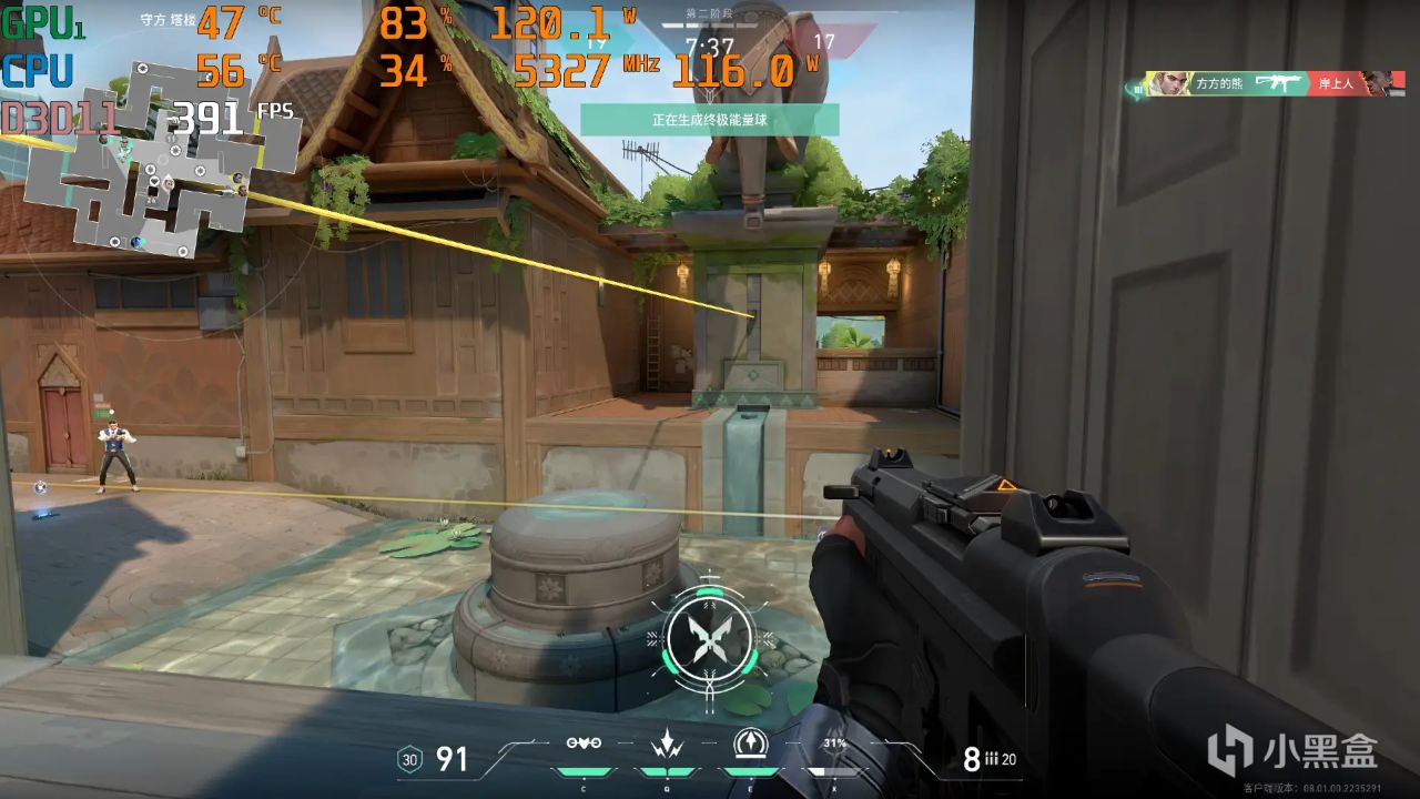 《无畏契约》2K分辨率+最高画质,游戏帧数能保持在400FPS左右。