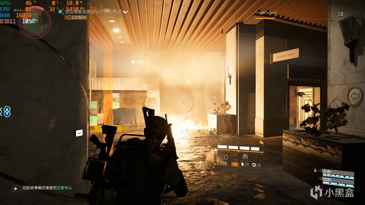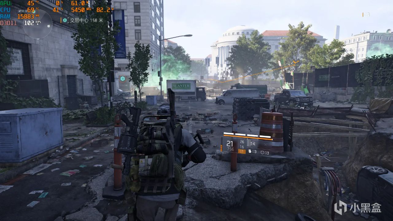 《全境封锁2 》2K分辨率+DLSS自动模式+最高画质,游戏帧数也保持在100FPS左右,整体流畅性也不错。