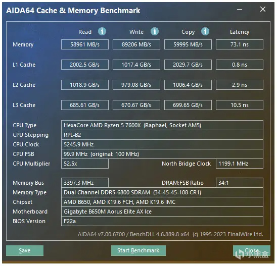 当然,本身7600X这颗处理器表现还不错,6核12线程,主频4.7GHz,睿频5.3GHz。