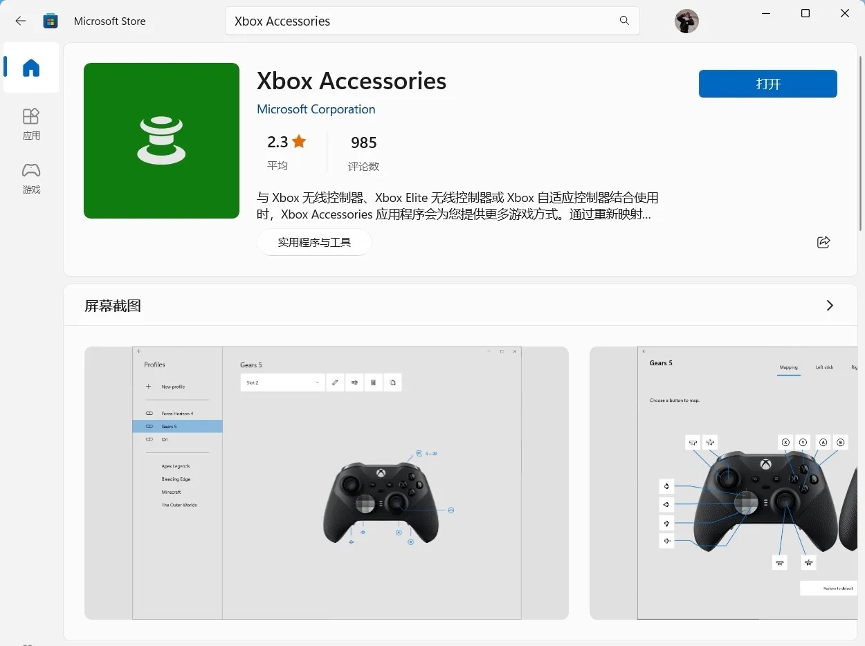 Xbox Accessories软件可以直接在微软的『Microsoft Store』下载即可。