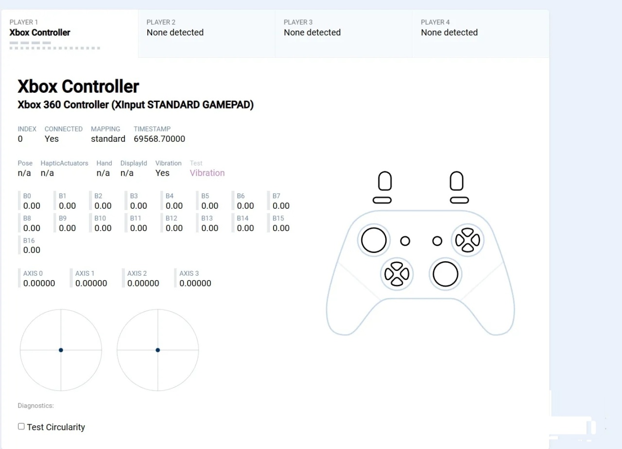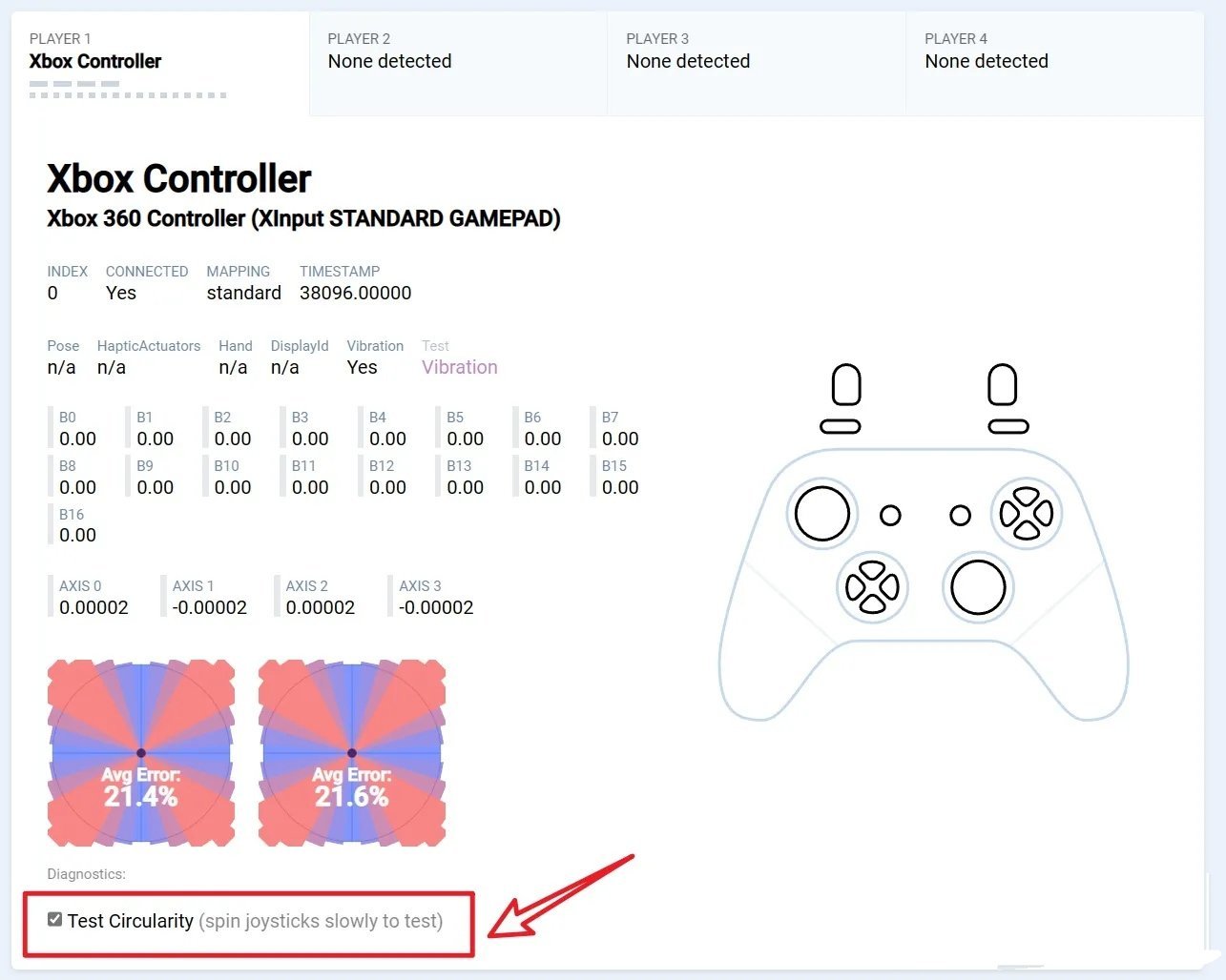 该网站可以测试手柄的各个按键,扳机精度,以及摇杆死区等。