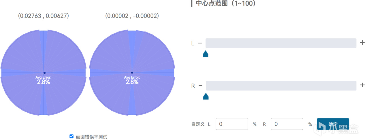我们会发现错误率没变,但左摇杆中心位点发生偏移,说明我安装出现了问题,左摇杆向右下偏移了,心疼一波手柄