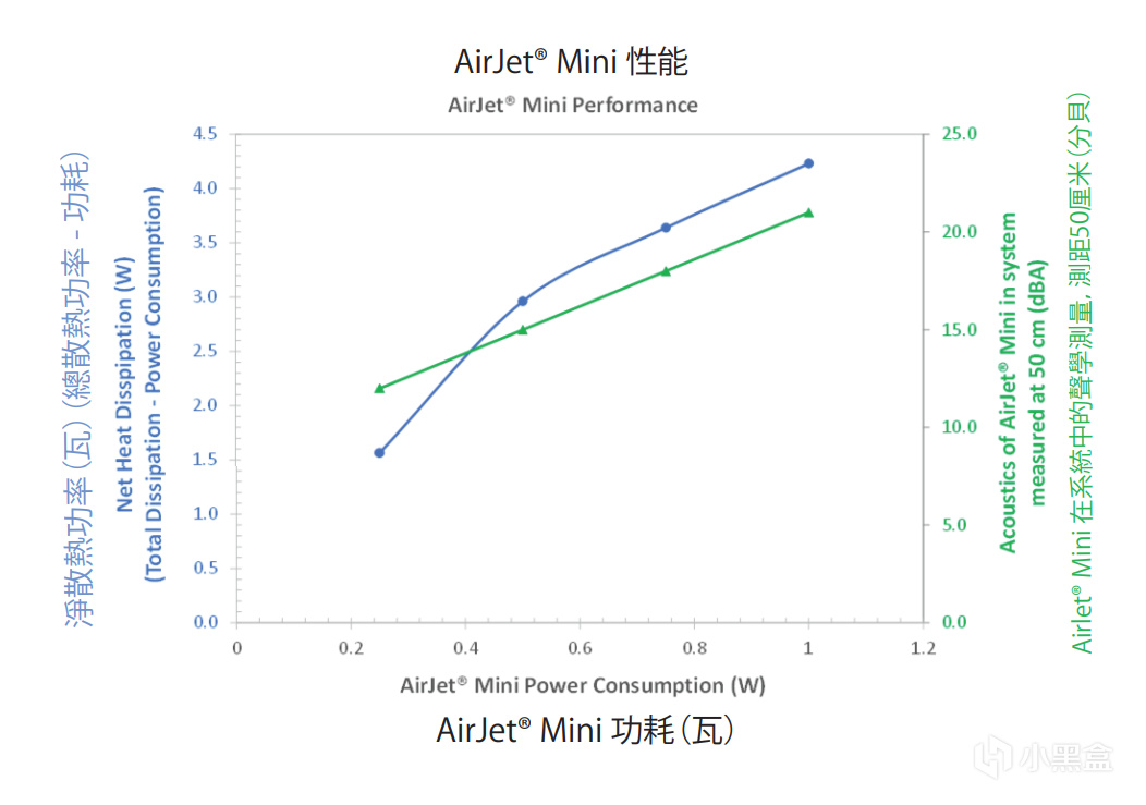 小型化的设计让AirJet Mini可以更轻松的安装到笔记本中,以11mm厚的13英寸笔记本为例,由于散热限制,处理器TDP可能会被控制在10W之内,而同样散热模组空间内可以装下3组AirJet Mini,并支持处理器20W TDP的性能释放,同时还能够将噪音控制在27dBA内。