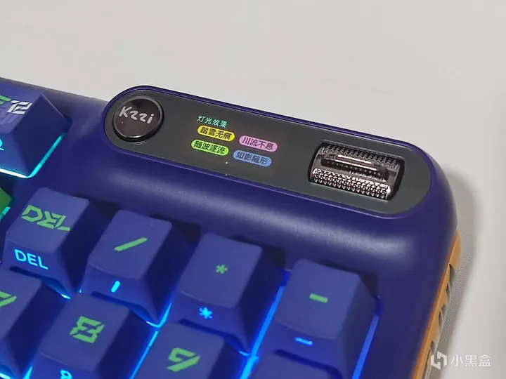 珂芝Z98 IP定制款全键支持1600万色RGB灯光调节,通过键盘右上角的屏幕+拨杆可轻松调节随波逐流、峰回路转、一触即发、一石二鸟等多种炫酷灯效。