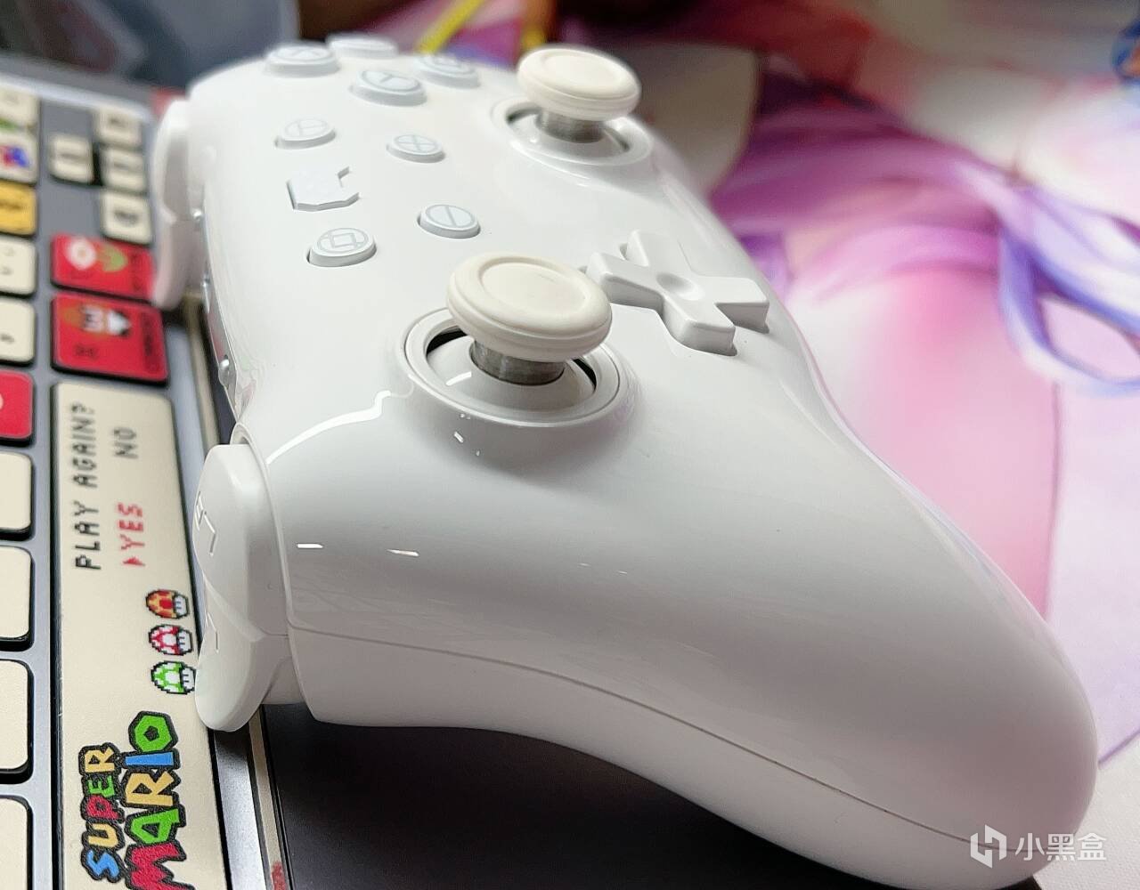 这一代手柄明显和上一代手柄有质的提升,如果说上一代鲜明的棱角,这一代是完美的弧度,边缘设计饱满,拿在手上圆滚滚的十分舒适,并且由于整体变大了,更加适合中大手的玩家打游戏。