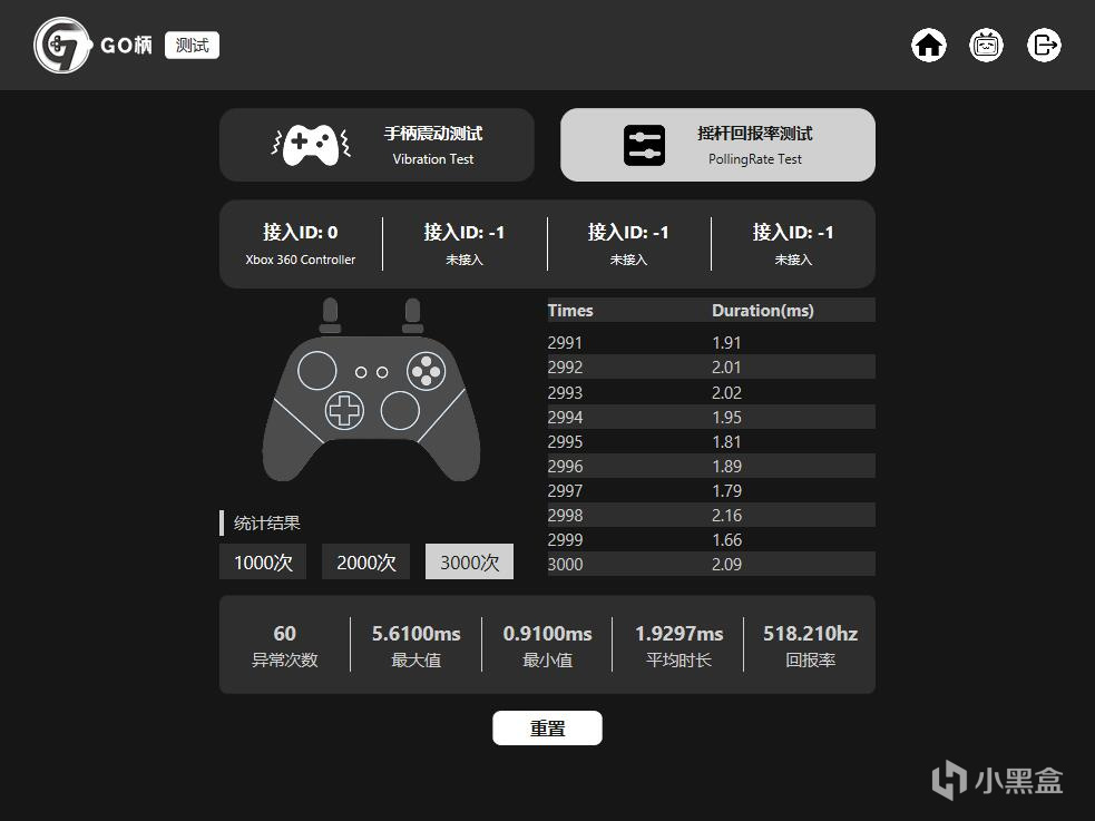 本产品没有背键就不展示了,是时候插上电脑测试手柄。因为我这次把手柄带回老家了,本次手柄没有2.4g接收器,本次仅展示有线连接的情况,回报率可以达到500hz以上,也适合玩PFS入手,蓝牙和2.4g接收器大概在250hz左右,仅供参考,回头我测了实际实际数据,会在评论区补上。