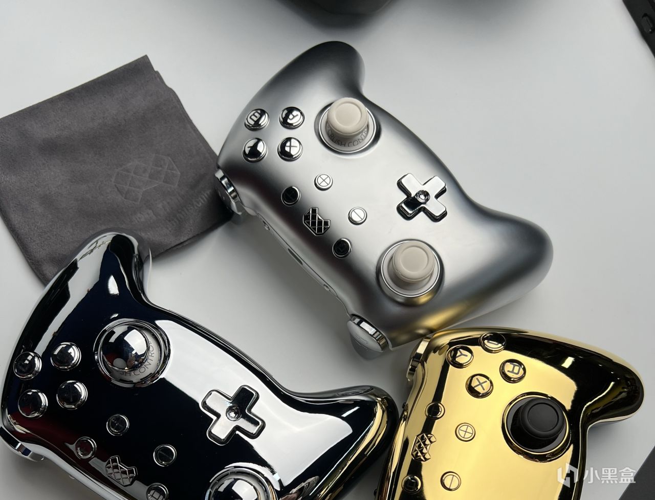 瓷白面壳是标准版的手柄,采用的是仿釉面设计,但是经过打磨之后,手感真的棒,很有陶瓷的感觉。替换成其他透明的面壳就可以看到里面的结构,各个孔位设计以及底部破冰人的logo,待会打开细细看一下。上次的小手柄也融合到这个手柄里面了,其实就是小logo做到了启动键位,让人一眼就知道这个手柄不一样。