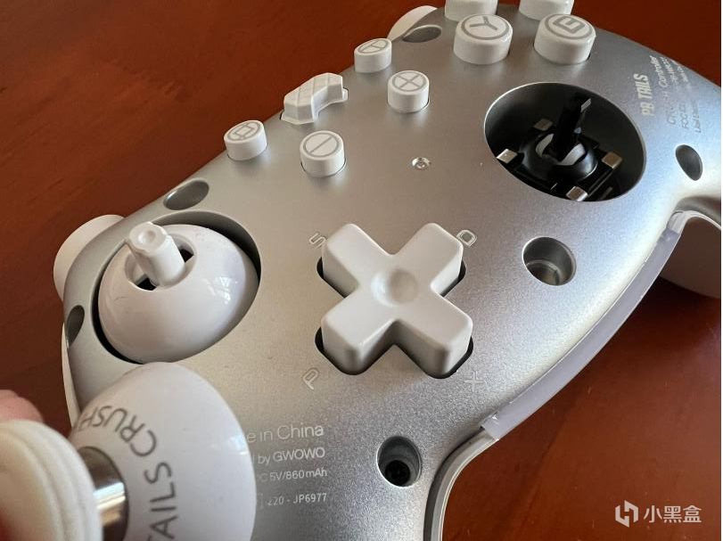 我们打开面壳之后就可以看到里面的结构,仔细一看,我们能发现在十字键位藏着小彩蛋PSDX,其实就是代表着4个著名的厂家,PS,SWITCH,DREAMCAST,XBOX。这也就是意味着这款手柄支持多家游戏平台,不仅仅在Xbox平台可以打游戏,更可以直接连接Switch平台,从键位上就是ABXY就是NS布局,而且顶部还可以一键适配不同的平台,十分方便。