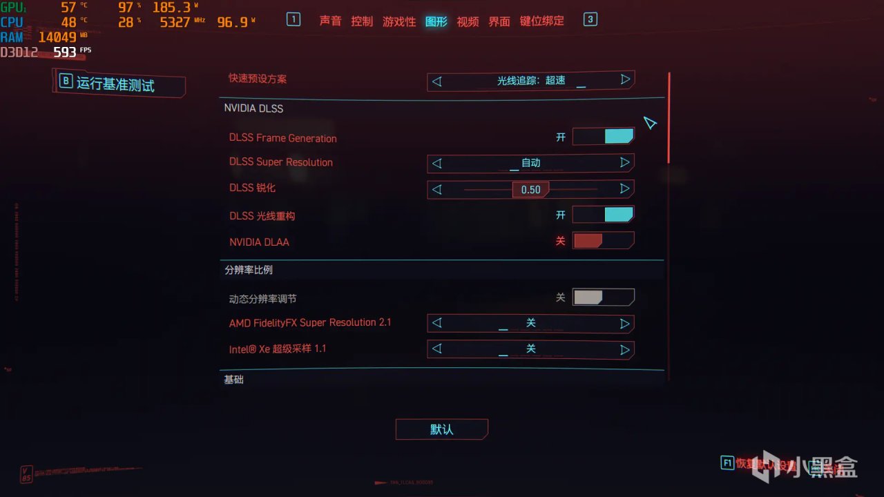 4K分辨率+DLSS 3.5自动+光线追踪:超速设置,游戏帧数为50~60FPS,但整体的游戏体验会感觉有些延迟。