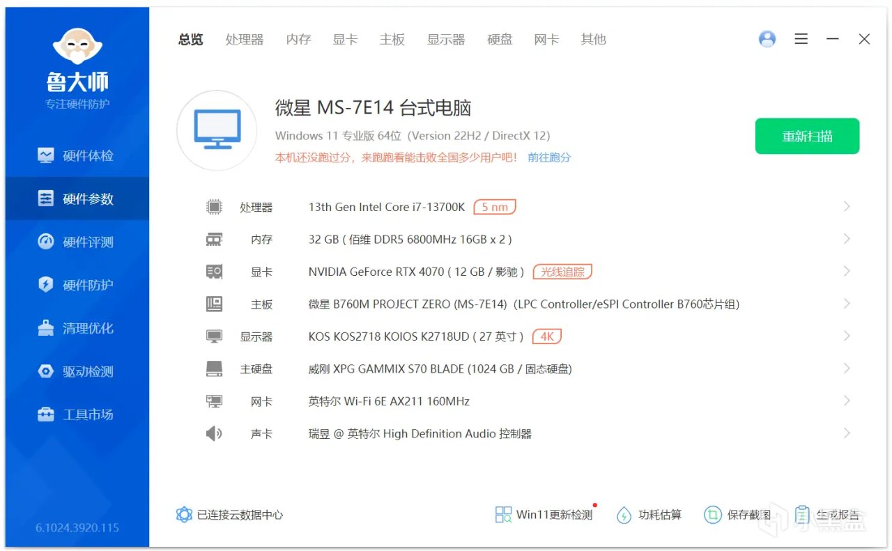 通过微星主板自带的MSI Center软件,可以轻松控制整机的ARGB灯效,风扇转速等一系列信息;当然对于新手来说安装各类驱动也是非常好用的。
