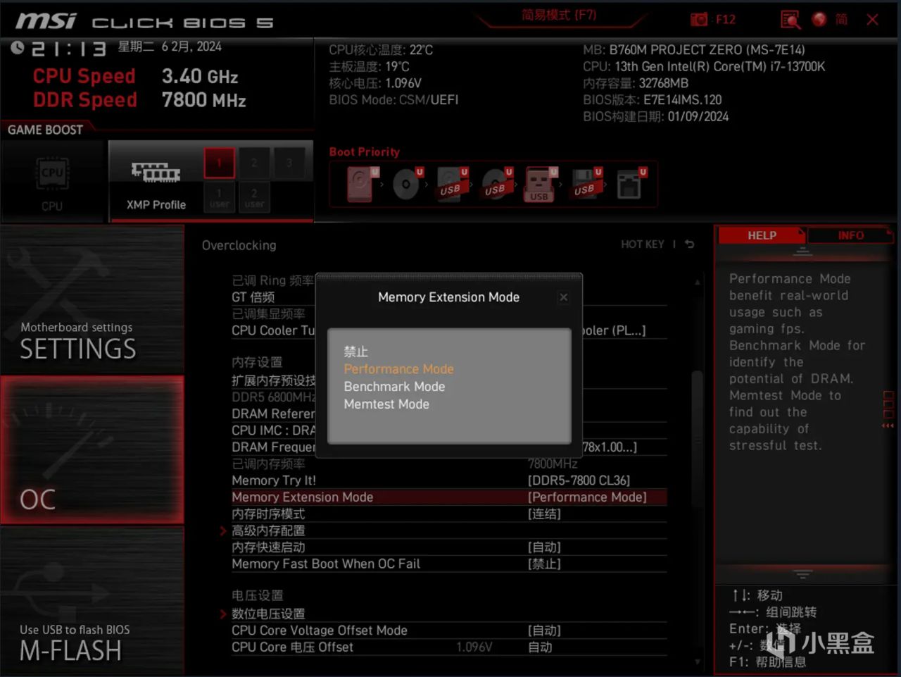 这里也要说明一下,微星的主板在内存超频这块目前有不少预设,可以先通过Memory Try it!先尝试大概的频率,然后更好的进行超频;至于Memory Extension Mode技术也要强烈建议开启,选择Performance Mode。