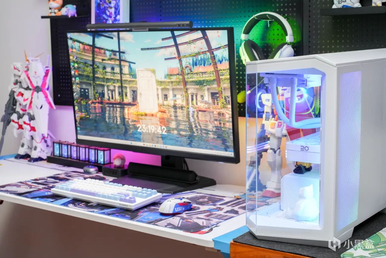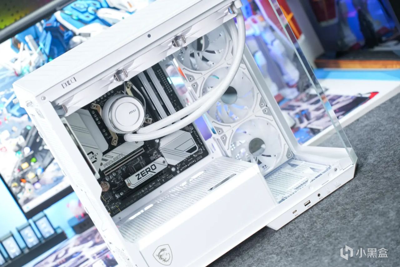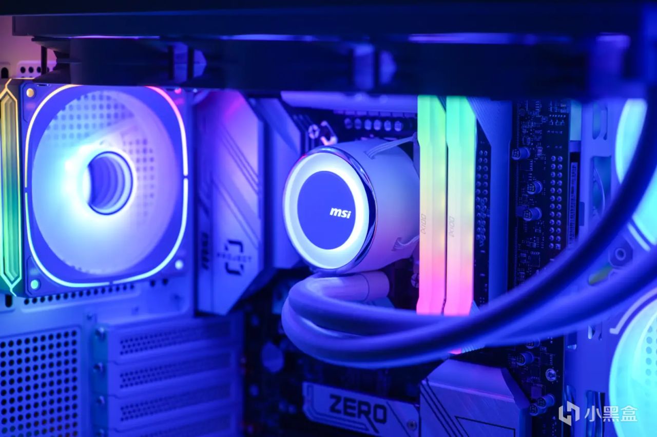 这次用的处理器为i7-13700K,配搭的水冷散热器微星MAG CORELIQUID E360水冷。该散热器也是纯白设计,在水冷头的顶盖上采用了可旋转的设计,支持270°自定义调整+ARGB灯效;