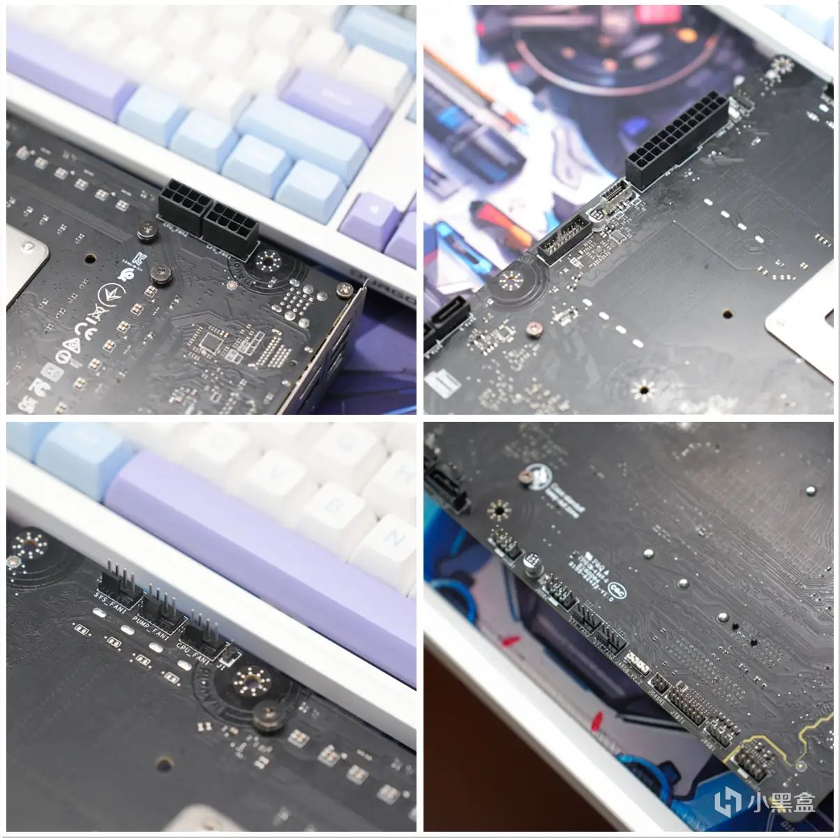 比如双8pin的CPU供电、主板供电、ARGB灯光同步、CPU风扇、水泵接口;还有底部的USB、风扇、以及开关机、硬盘读写指示灯、重启等等一系列跳线接口。