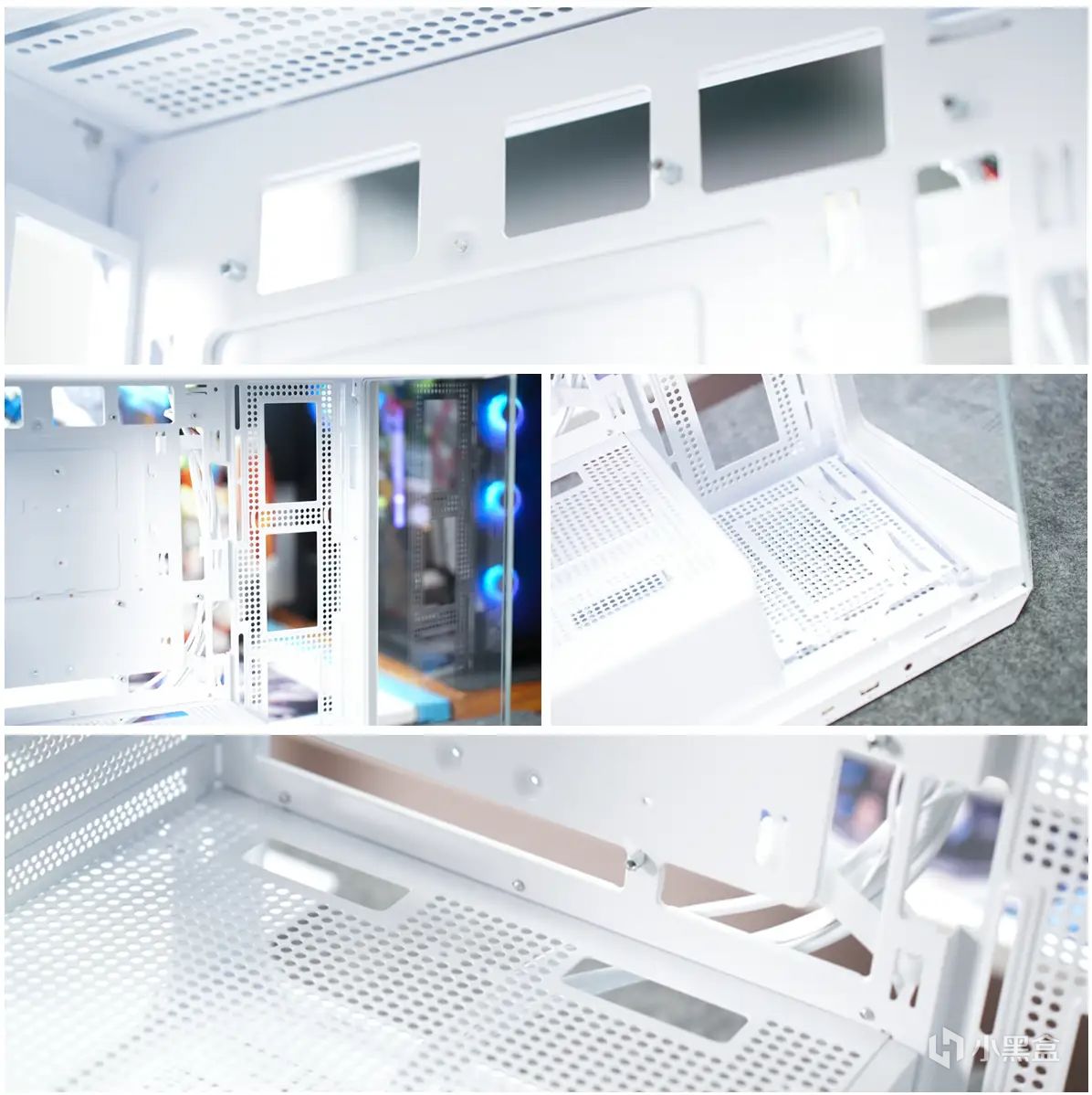 通过内部的细节不难看出,该机箱的开槽极多,就是为了支持主板的背插设计以及隐藏走线。