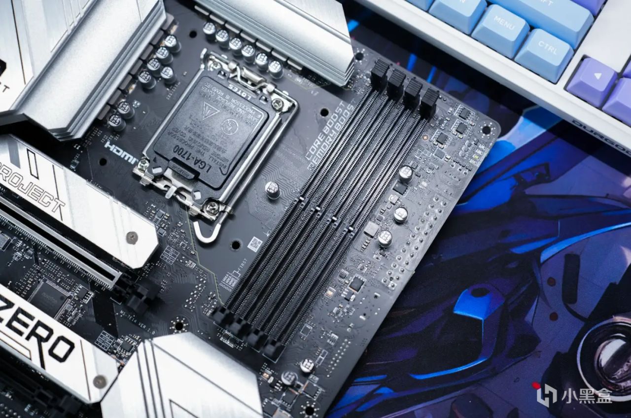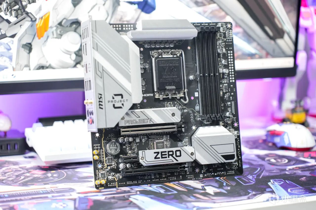 从产品的外观+规格来说,微星B760M PROJECT ZERO其实是微星B760迫击炮的“改装版”。其正面的布局与后者如出一辙,黑色的PCB结合银色的散热铠甲,再加上没有接口的设计以及ZERO的标识,也让产品的辨识度进一步提升。