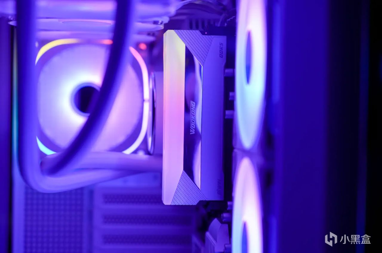 内存方面我用的是佰维WOOKONG DX100 DDR5内存,该内存的外观也非常契合这台主机,并且还支持ARGB灯效,点亮后效果非常不错。