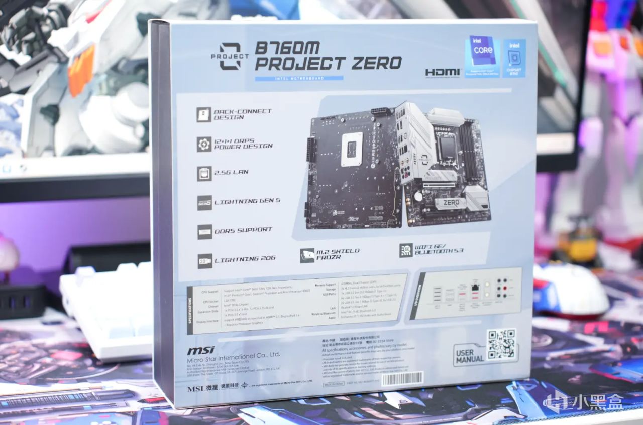 首先来说说本文的一号主角——微星B760M PROJECT ZERO背插主板。其外包装就非常与众不同,看起来就非常高档,在外包装上也注明了该主板采用了背插设计。