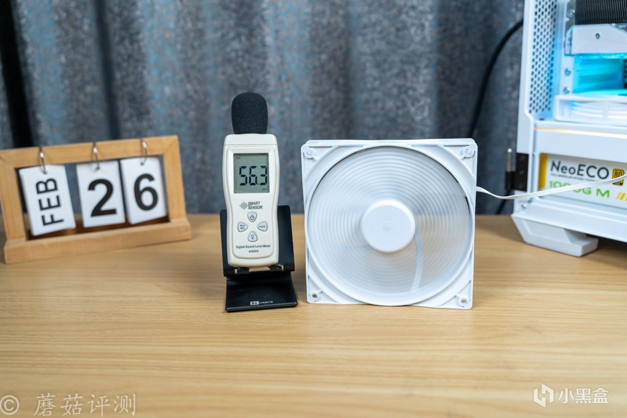 ▼在100%转速之后,风扇转动的声音几乎听不到,但能明显感受到风声,噪音水平在56.3dB,也很安静。