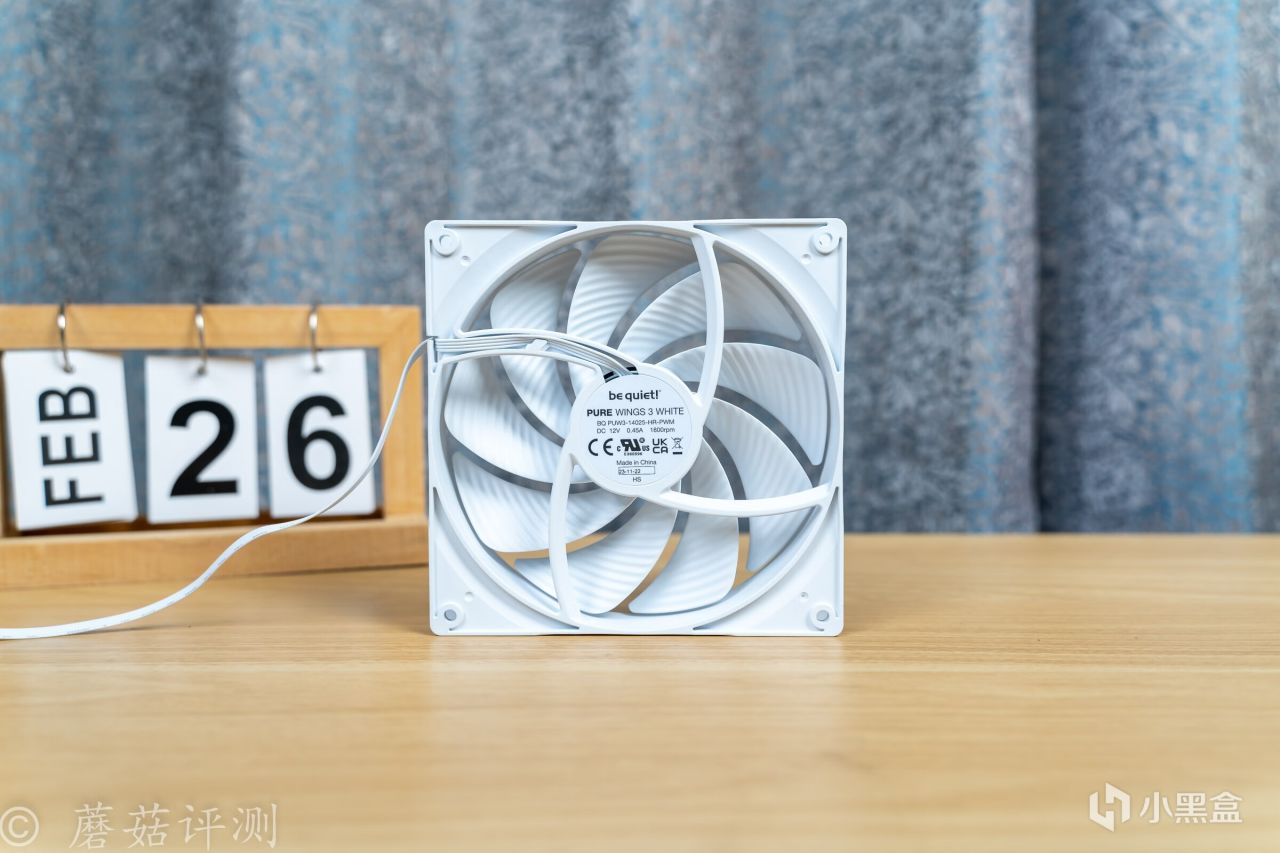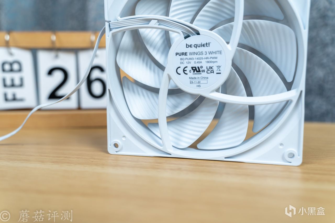 德商德静界这款PURE WINGS 3 140mm PWM白色高速版风扇的整体表现非常不错,尤其是这个白色配色的版本,给人一种非常惊艳的感觉。可能是蘑菇日常黑色的机箱风扇看的太多了,这种纯白的、无灯效的机箱风扇,给人一种明显的精致、低调的感觉。