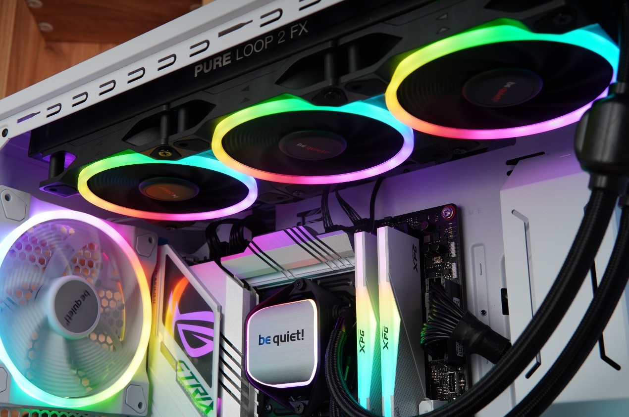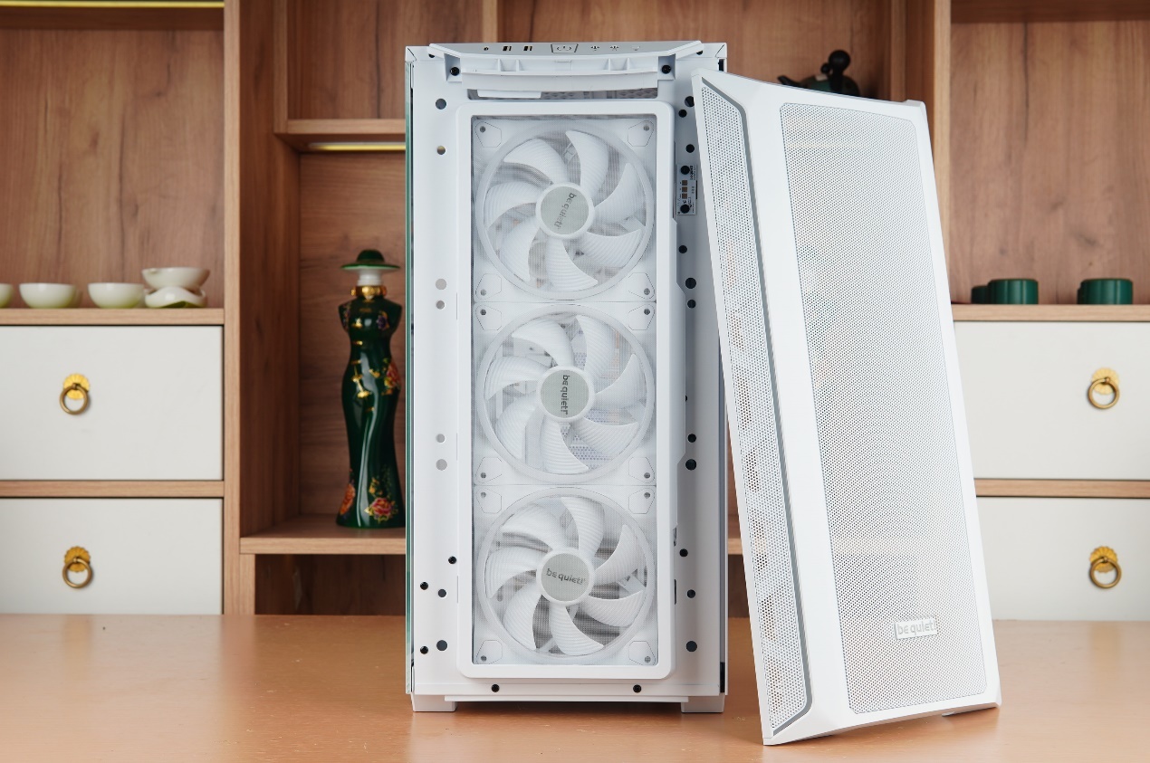 SHADOW BASE 800 FX标配的是4把Light Wings 140mm ARGB风扇,前面板装满3把,后部还有另外一把。