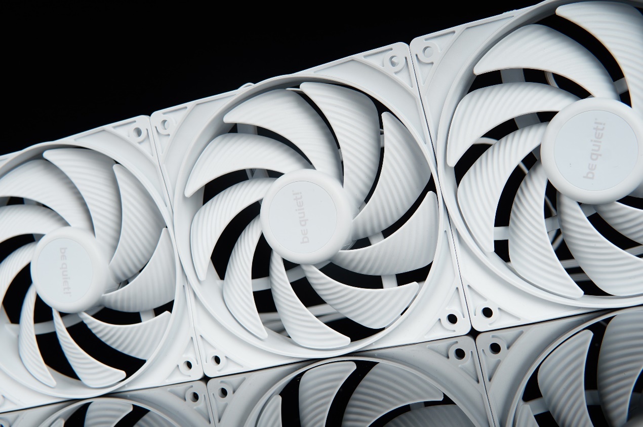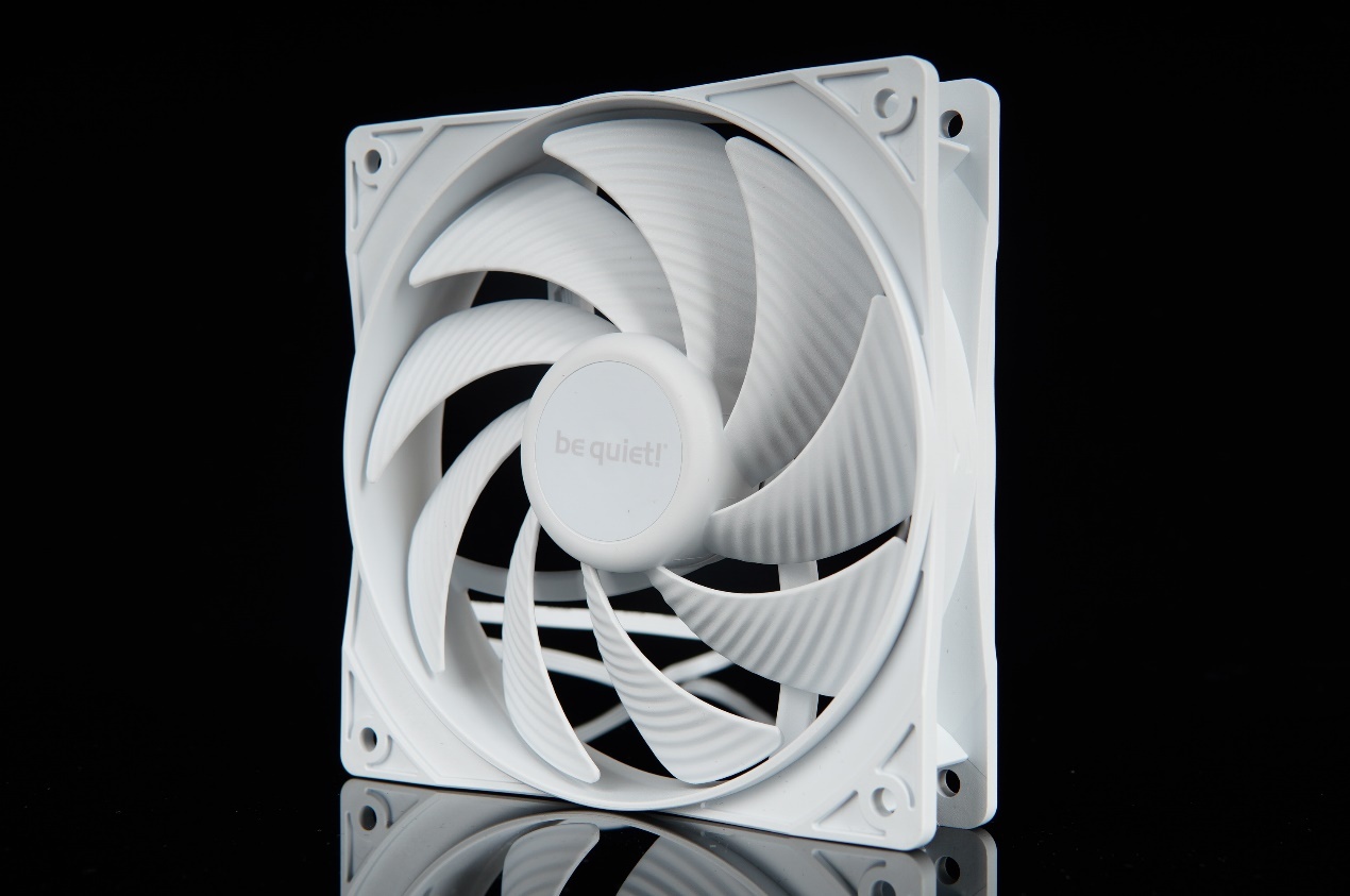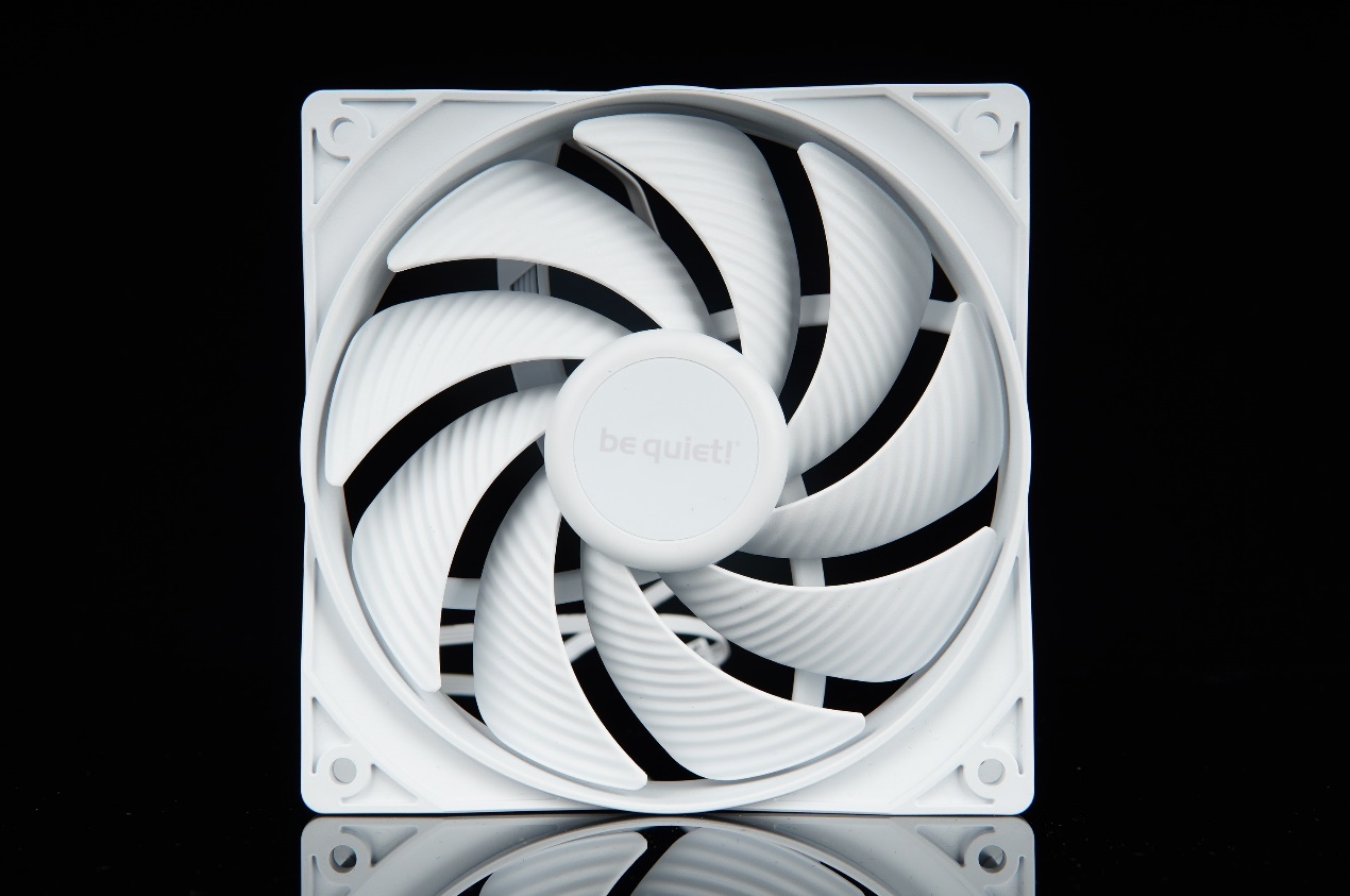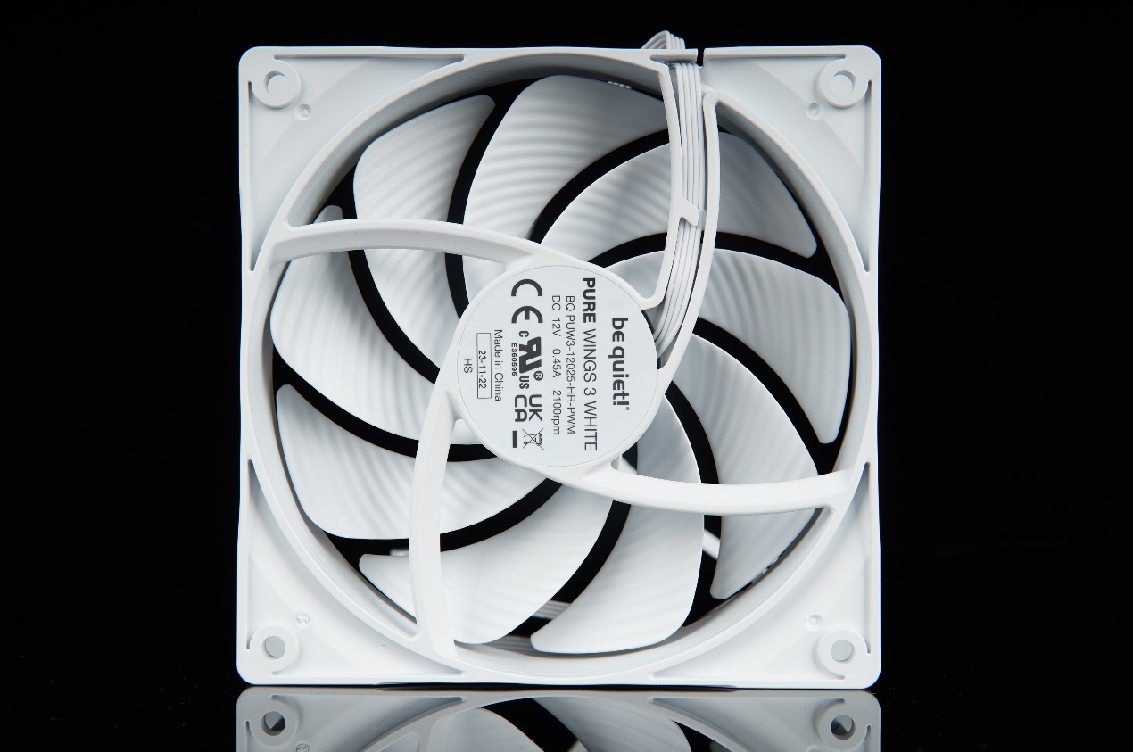 德商德静界(be quiet!)PURE WINGS 3 WHITE系列风扇的外包装依然是德味十足的家族式设计,黑色为主搭配白色的产品渲染图的本体色质感十足。PURE WINGS 3系列风扇在尺寸方面有120mm以及140mm,转速方面120mm规格有1600RPM以及2100RPM版本;140mm规格有1200RPM以及1800RPM版本;颜色方面有黑白两色可选。并且本次的高速版本拥有闭环马达技术以及更强的扇叶,当遇到阻力时,风扇的旋转速度通常会变慢,而闭环马达技术会不断监测当前转速,并在必要时将其拉升至目标转速,这使得高速型号始终以所需的速度运行。如此多的版本足以满足玩家对其不同位置使用的转速需求,比如追求静音体验的可以选择低转速档位,追求性能的则可以选择高转速档位。而我本次上手的则是PURE WINGS 3 120mm PWM high-speed WHITE版本。