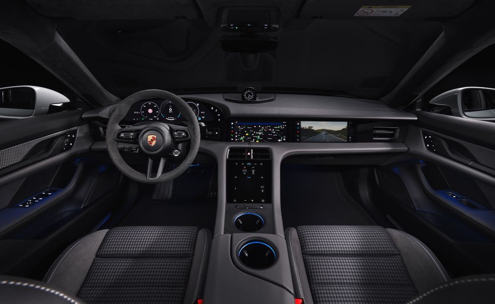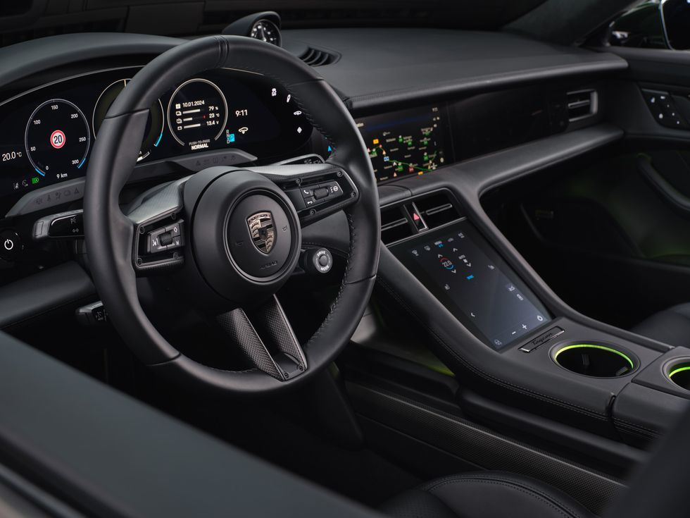 新车内饰变化很小。可选的副驾驶侧屏幕增加了新的滤镜,只能从副驾驶位看到,可以在行驶中合法播放视频。数字仪表盘也经过重新设计,现在可以显示汽车根据当前电池状况支持的最大充电速度预测。用户界面方面则采用了新一代 Apple CarPlay+,可以控制空调等功能。使用保时捷自有导航系统的驾驶员还可以围绕充电站和目标电池电量规划详细的路线。