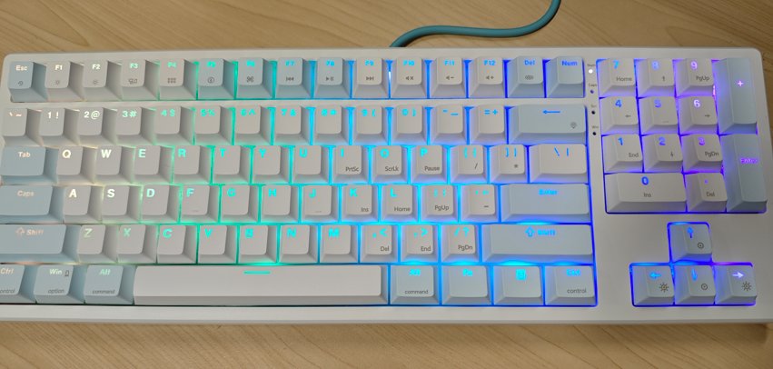 GA87有白色、黑色、蓝白色三种配色,混光、RGB和热插拔三种版本,以及青轴、红轴和茶轴三种轴体。