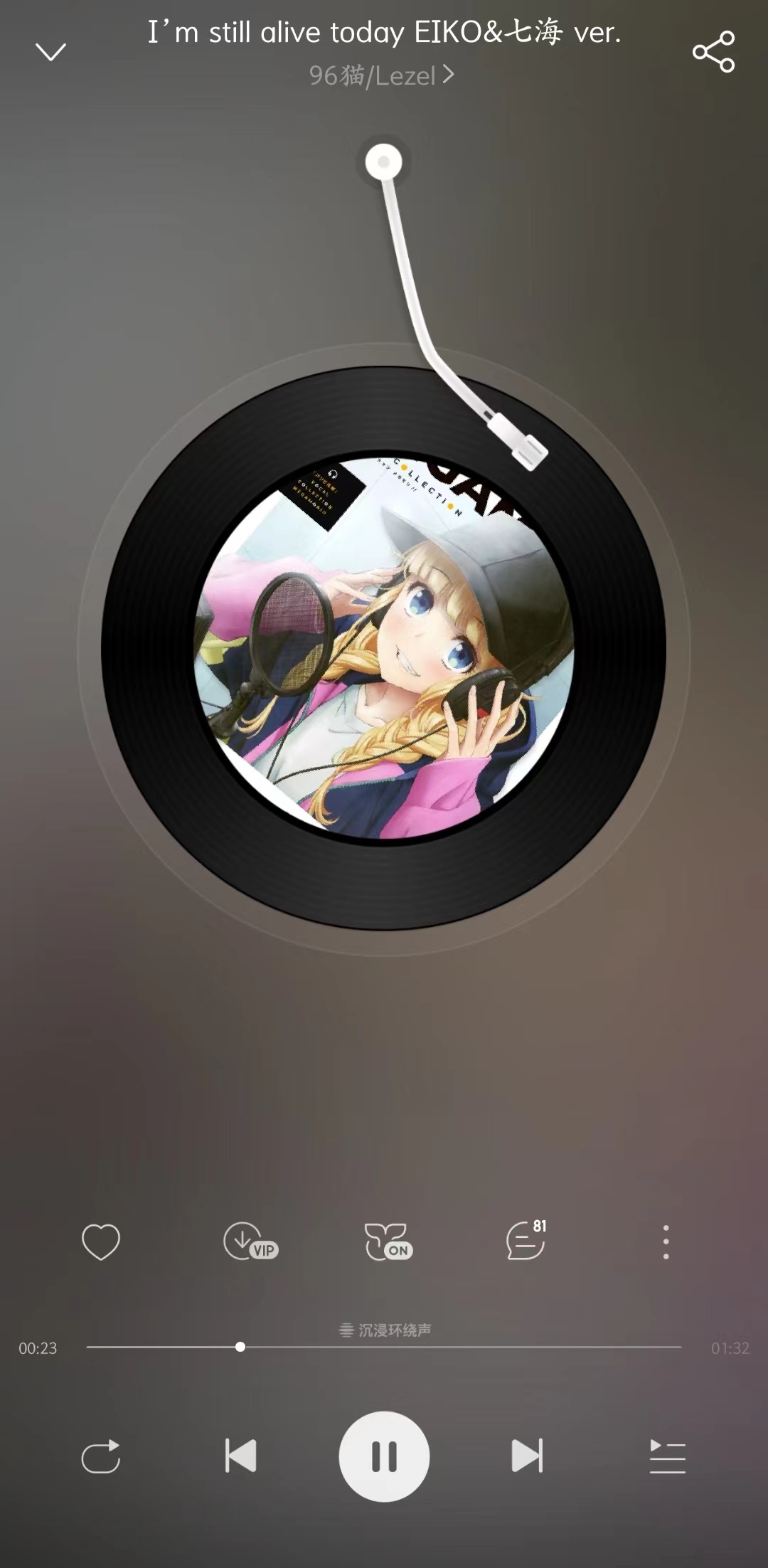 因为呐酱电脑是3.5mm接口的,所以呐酱只用了手机进行测试,接上耳机后打开我的网易云,刚好上次轮播的歌曲就是下图的派对浪客插曲《I'm still alive today》,第一句开始时我一愣住了——太细节了。