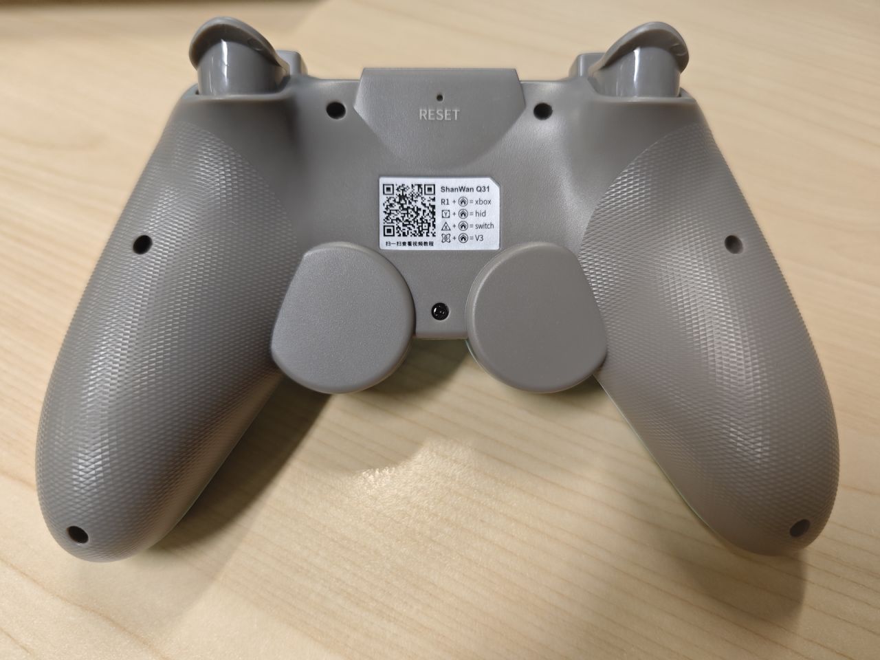 手柄的握把处有防滑处理,后面设计的比较简单,没有自定义键和电源开关。