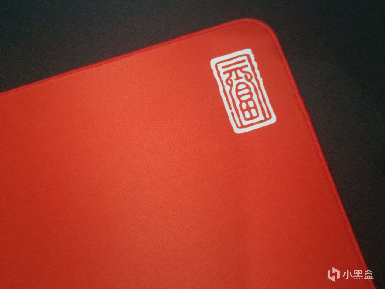 首先就是鼠标垫配色,这次的黑著一代Pro总算是舍弃掉了之前令人诟病的金龙和蓝龙,做的是纯色垫子,采用了红、紫、黑、蓝、承(橙)共五种颜色,右上角是一个图案(似乎是某个文字的篆体,这次我是真的找不到了),还挺好看的,开箱之后这款垫子是有明显的香味的,仔细闻一下可以闻到一点底胶的味道,基本上就闻不到的,这个味道好评。