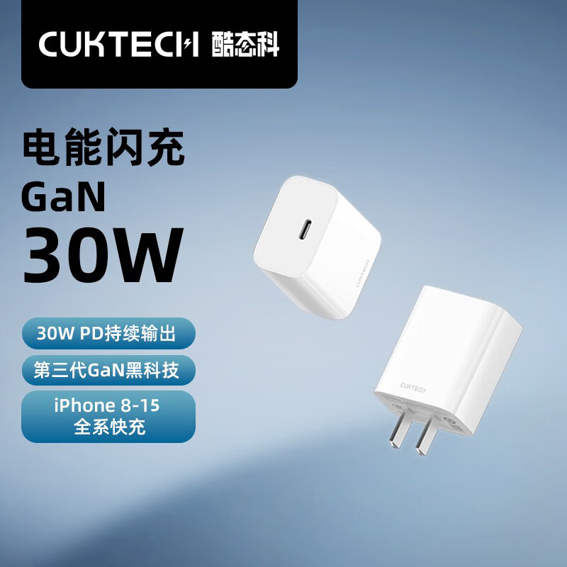 继此前“酷态科 20W USB-C 充电头 19 元”后,目前酷态科在京东上架一款 30W USB-C 充电头,同样支持 PD 快充,售 25 元。