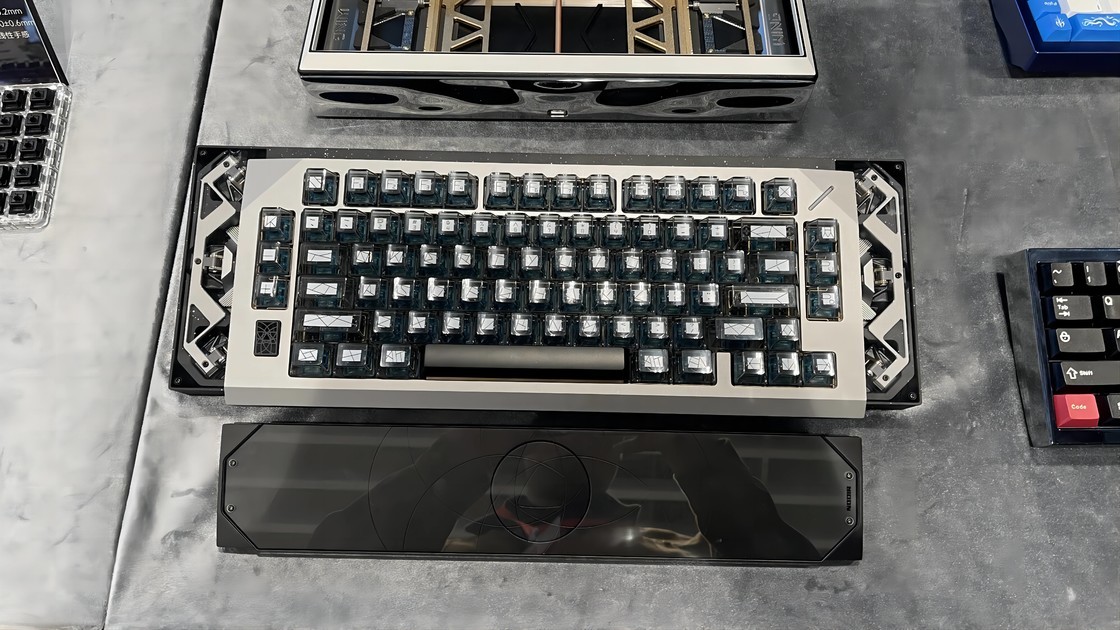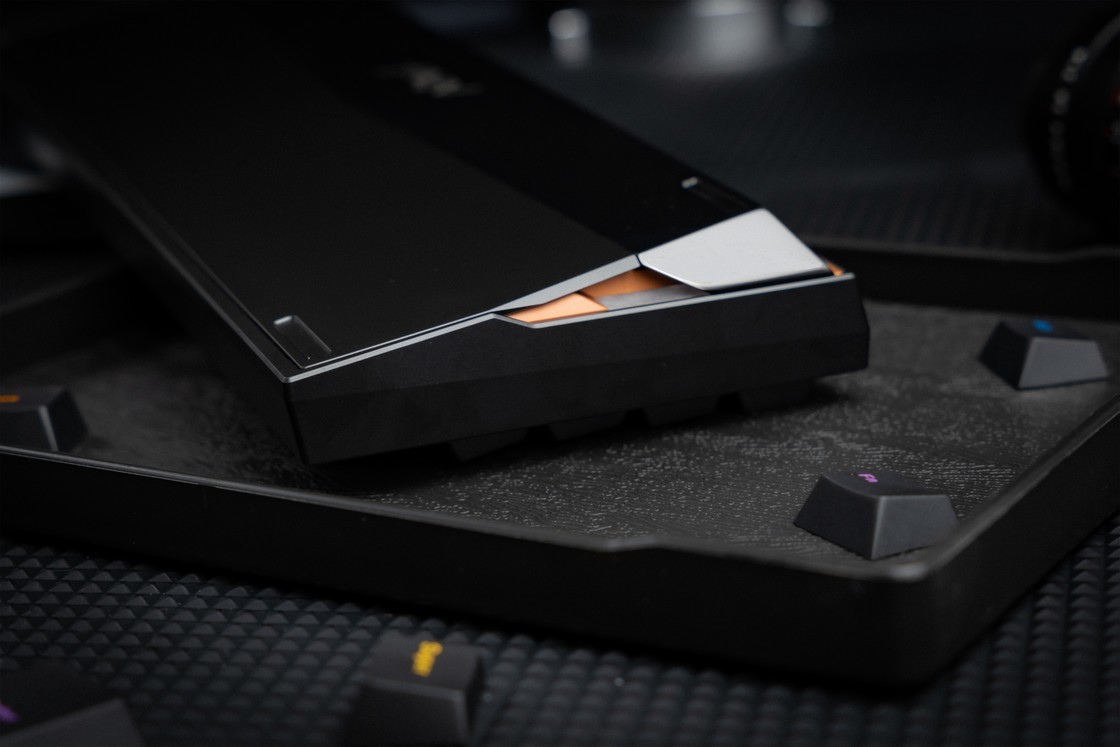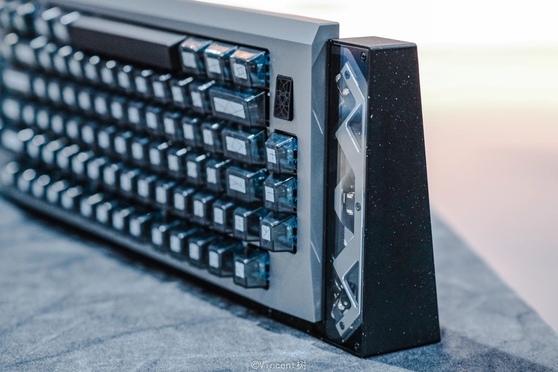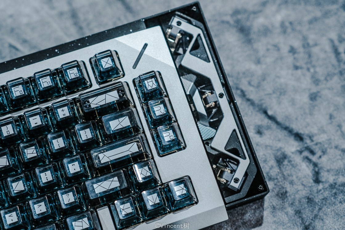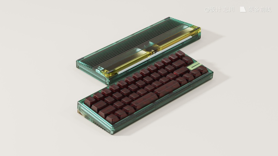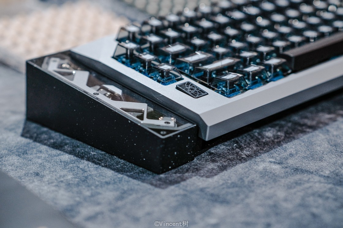 做键盘的一般分两种,一种是注重于键盘本身,另一种则是将键盘作为次要元素,融入自己的设计中。NOORI属于后者,他们相当清楚自己的优势,而这次通过可视化的结构设计和超白钢化玻璃,可以在两侧清晰的看到结构件的运动状态。