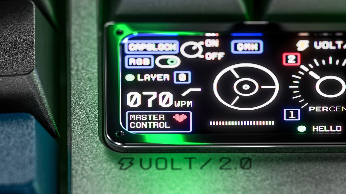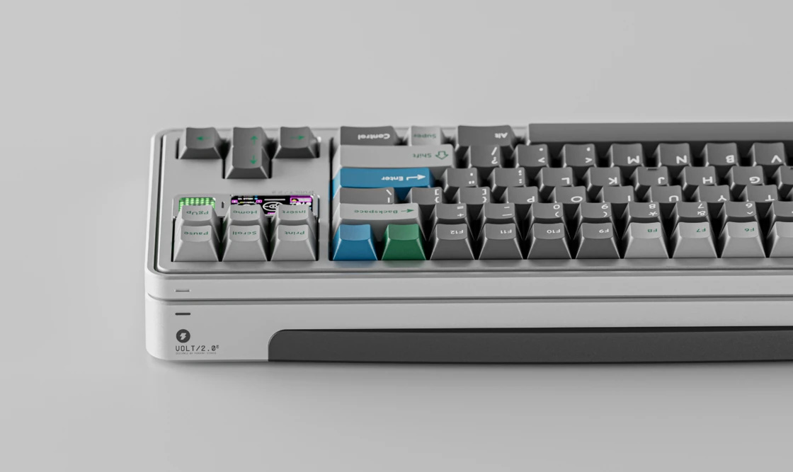 VOLT2.0相较于一代在腰身上的设计变化很大,甚至可以说这是两把键盘,但这次的VOLT2.0我个人不太有购买意愿,高昂的价格,紧凑80配列都是劝退我的点,整体造型也略显壮硕,而对于屏幕我个人不太感冒,可以是一个加分项,但不是一个必要的部分,不过这次的屏幕算做的蛮好看的,少有的不扣分设计。