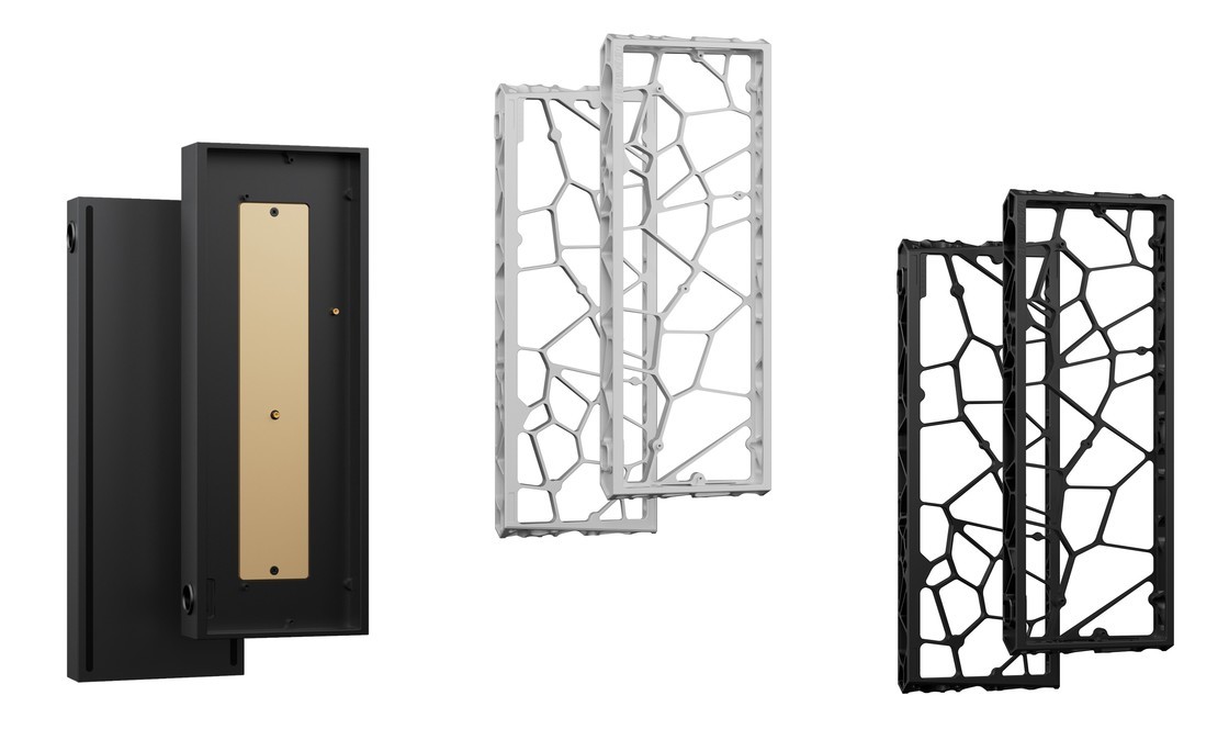 leaf spring最好做在金属材质上,玻纤材质做leaf spring不能很好发挥这个震颤系统的真正价值。像是无棉无钢的键盘,可以选择相对原始但稳妥的分布式gasket设计,其实做gasket mount只要把简单的系统调教的好,就已经能超越市面上绝大多数键盘的内胆设计了。