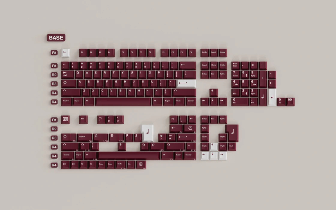 配列方面分为两部分,大体上可以看做TKL的延伸,但通过盖板调整进行F区的取舍和复古十字方向键设置。