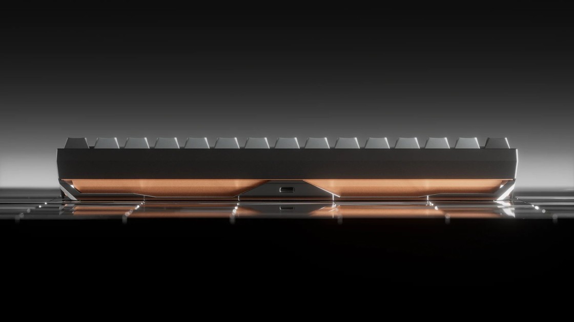 Haven 60选择了成斜对角前低后高的设计,搭配圆角边框。斜对角线条引导视线流动,使得键盘看起来更加灵动,现代感和层次感也更强。