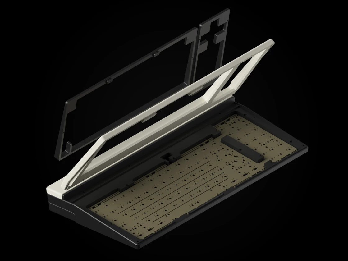 本次采用的结构是top与gasket双兼容,当然这把键盘主打的是top结构,gasket就只采用了比较简易的六个硅胶套,也没有在定位板上采用板簧结构,所以声音方面大家可以期待一个更加清脆明亮,而不是沉闷麻将的表现。