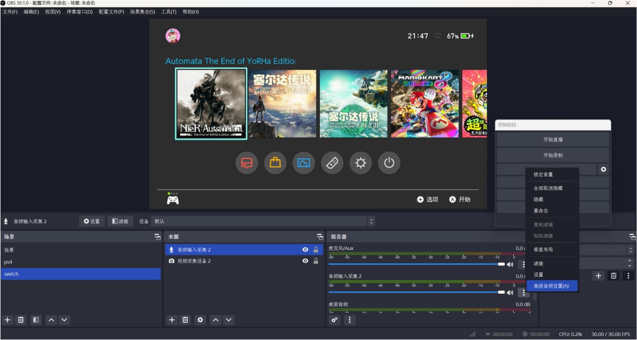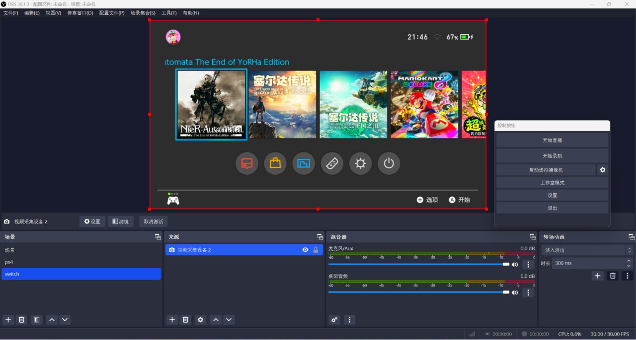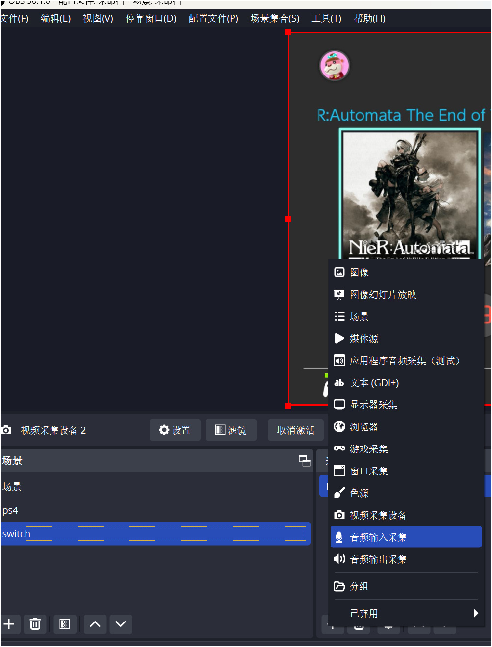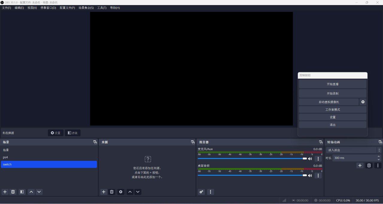 我们这里就以obs为例,首先新建一个场景,把场景命名为Switch,或者默认也行。