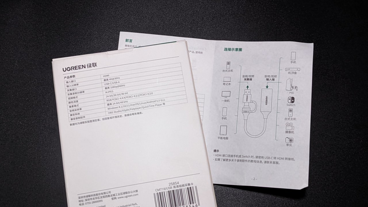 而我拿的这款绿联1080p60帧的采集卡其实完全的满足大家的需求。