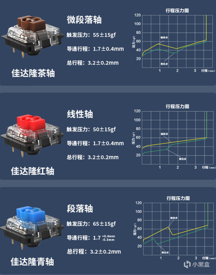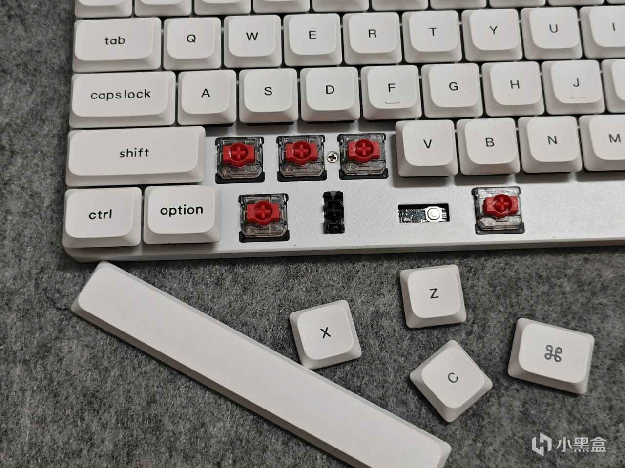 来到键盘的轴体部分,K3Pro一共有三种轴体可供选择,分别是佳达隆的茶轴、红轴、青轴,轴体出厂自润。还分了可插拔跟不可插拔的版本。骑猫手上这个是可插拔的红轴版本。红轴是一款线性轴体,他的触发压力为50gf、导通行程为1.7mm,总行程为3.2mm。红轴是一款非常适合办公的轴体,本身红轴的声音就是非常小的,加上较轻的触发压力,使得即便是长时间的码字也不易疲劳。