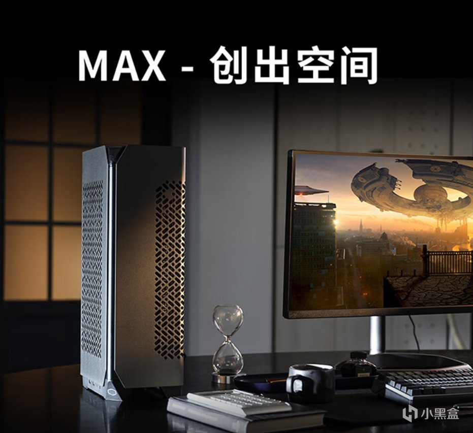 酷冷至尊NCORE100MAX可能是目前在售机ITX箱里,最有设计感的立式机箱。15.6L在立式里也算比较小的,桌面占用面积只有14.8CM*21CM,细高细高的。但是颜值请自行判断,比较有科技感的硬汉造型。这个机箱的特点是可以装大显卡,比如4080Super/4090 FE。但比较意外的是CPU散热不强,机箱自带120mm定制水冷,无需另购。但虽然是水冷,但只是120mm规格,所以顶天顶天上14600K。如果想上14700K并且能跑满,可能得自己动手研究一下散热器改装了。