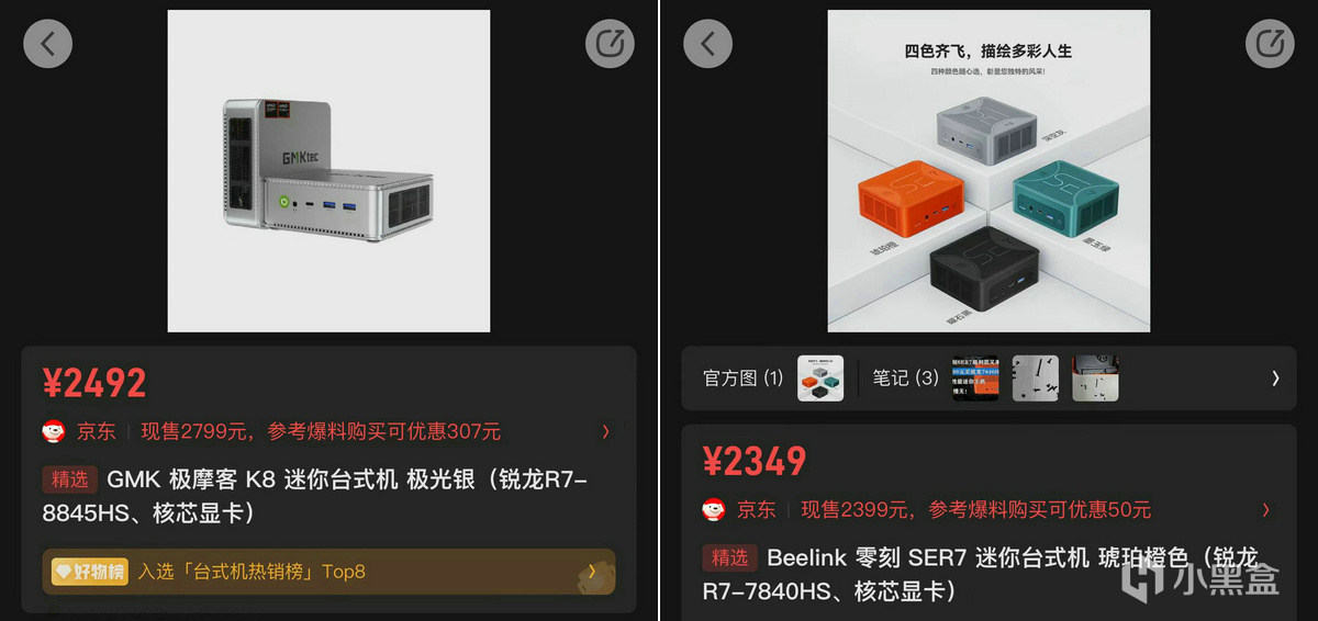 最关键的问题是,一台7840HS(8845H)迷你主机准系统只要2400元左右,配上32内存+1T硬盘也就3000多元。而一颗AMD 8700G的CPU单片就要2499元,其他包括机箱主板电源都需要花钱自己配,最终整机价格至少高出1500元,显然迷你机更有性价比。