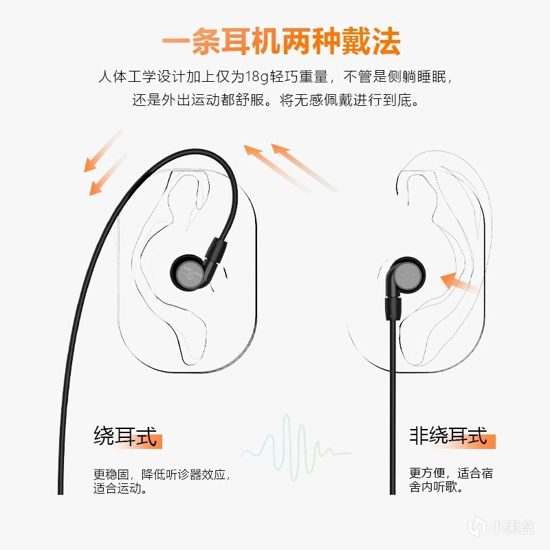 籁特易耳星光还有一个有趣的特色,就是这款耳机支持两种佩戴方式,除了常规的非绕耳式佩戴以外,籁特易耳星光还多了一种绕耳式佩戴方式,在长时间佩戴入耳式耳机时总会产生听诊器效应,而绕耳式佩戴可以更好地提升稳定性,减轻听诊器效应,使得听觉体验进一步提升。