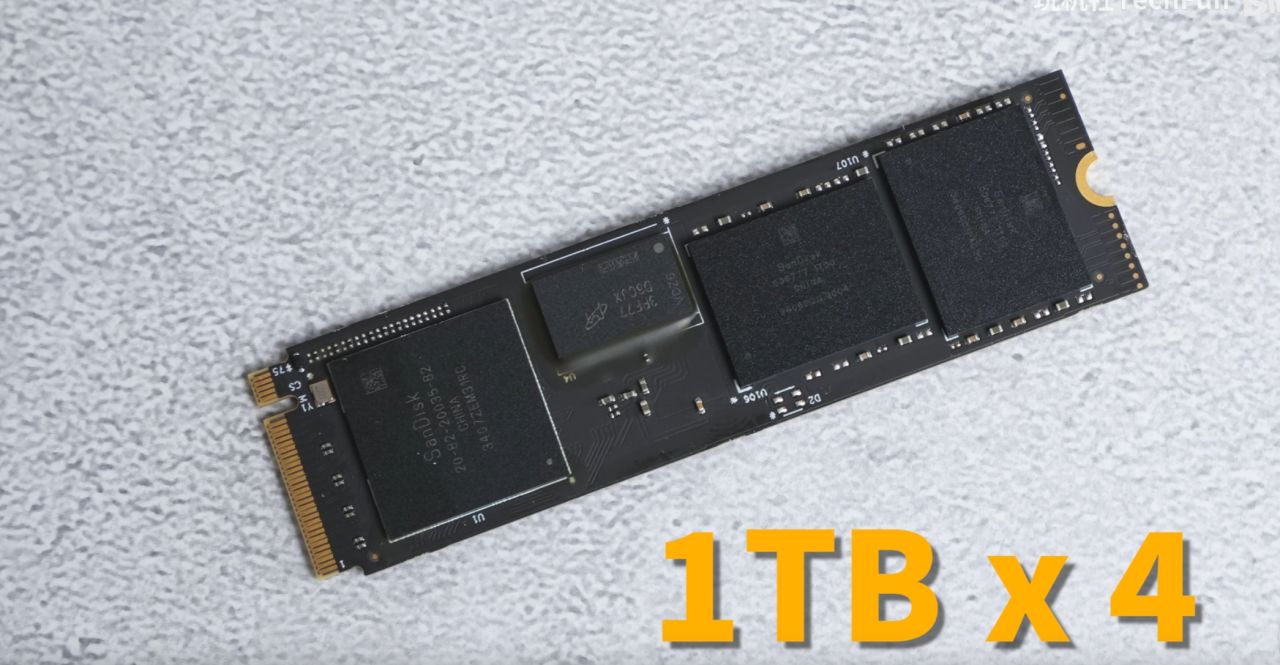 虽然硬盘不便宜,但它采用原厂颗粒,闪迪BiCS5 112层堆叠,TLC颗粒,单颗粒1TB容量 ,一共4颗粒。