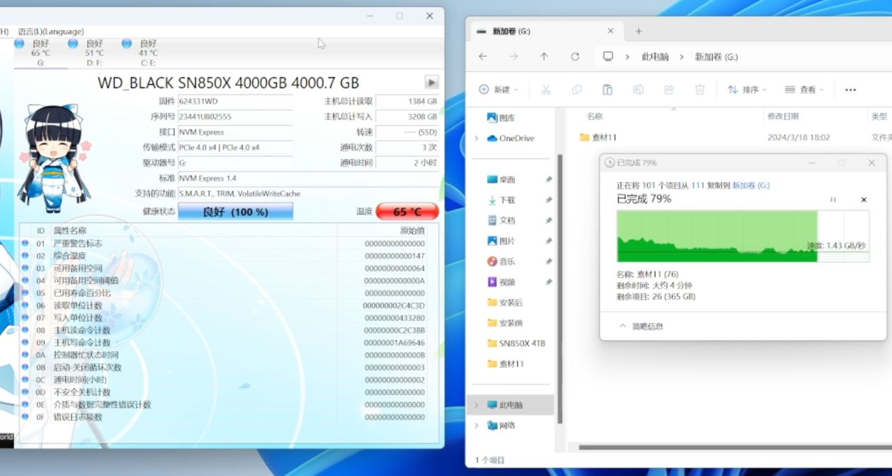 各位盒友大家好,我是奕婕,2月底的时候,不是给大家做了一期1小时长的装机教程嘛,是这个视频教程素材真的贼多,一下把我这台电脑唯一的1块固态硬盘快给塞满了
